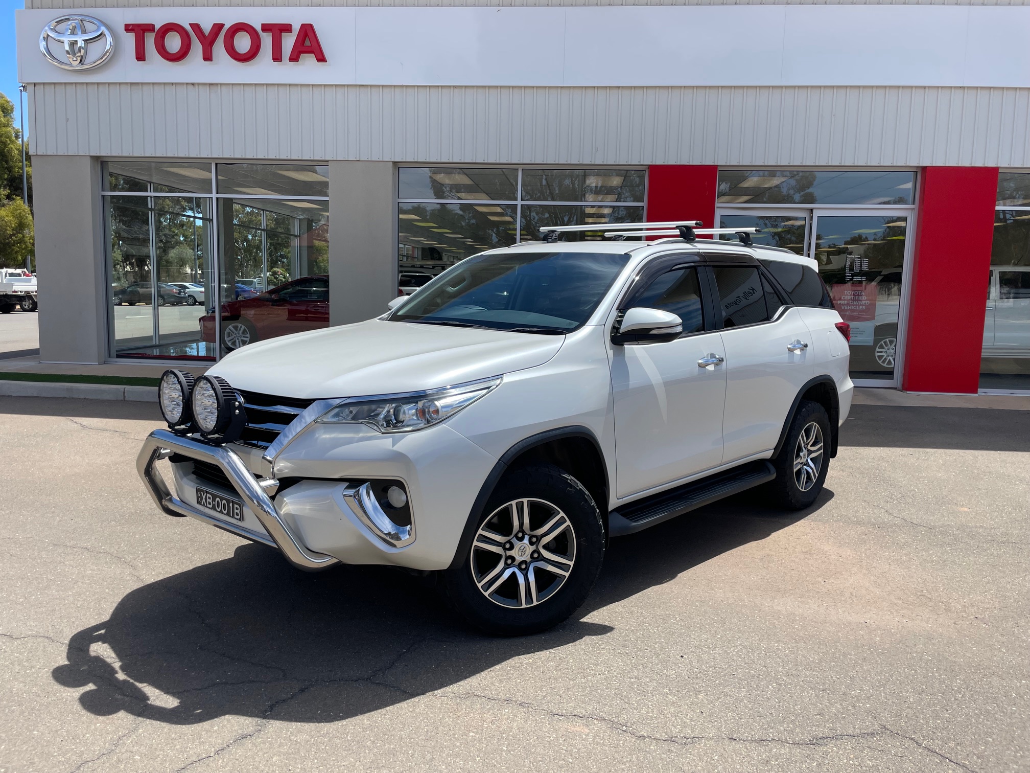 2016 Toyota Fortuner GXL 2.8 Turbo Diesel Automatic 4×4. This vehicle comes complete with full up to date Toyota service history. Features 2 x keys, reverse camera, cruise control, Bluetooth, alloy wheels, full size spare, 7 Seater, Rear Air-Conditioning, 4×4, rear diff lock, nudge bar, spot lights, roof racks, tow bar, weather shields, owners manuals plus lots more. Vehicle is in excellent condition inside and out and has just been serviced ready to go. Test drive today and get that Oh What a Feeling Toyota.