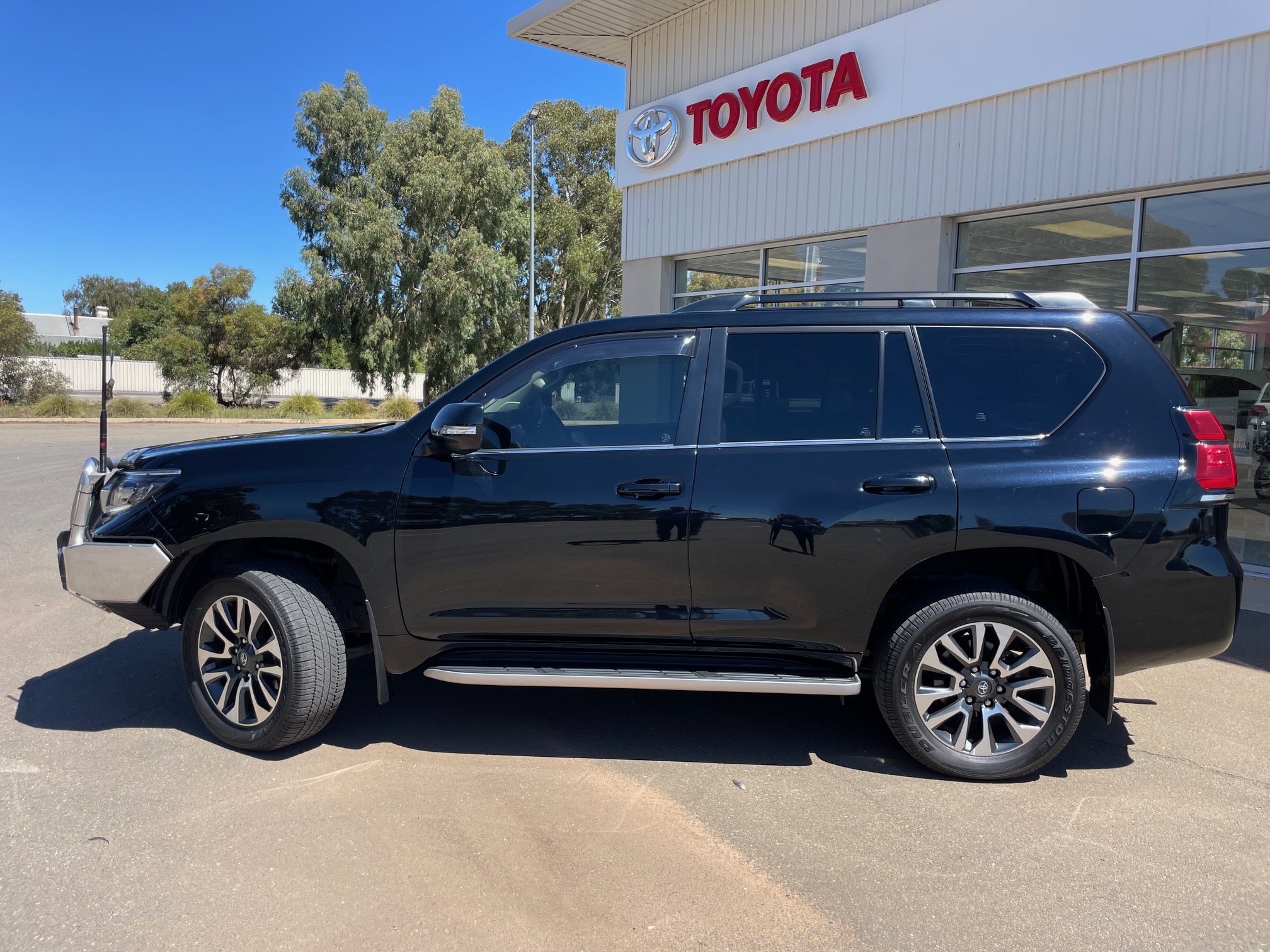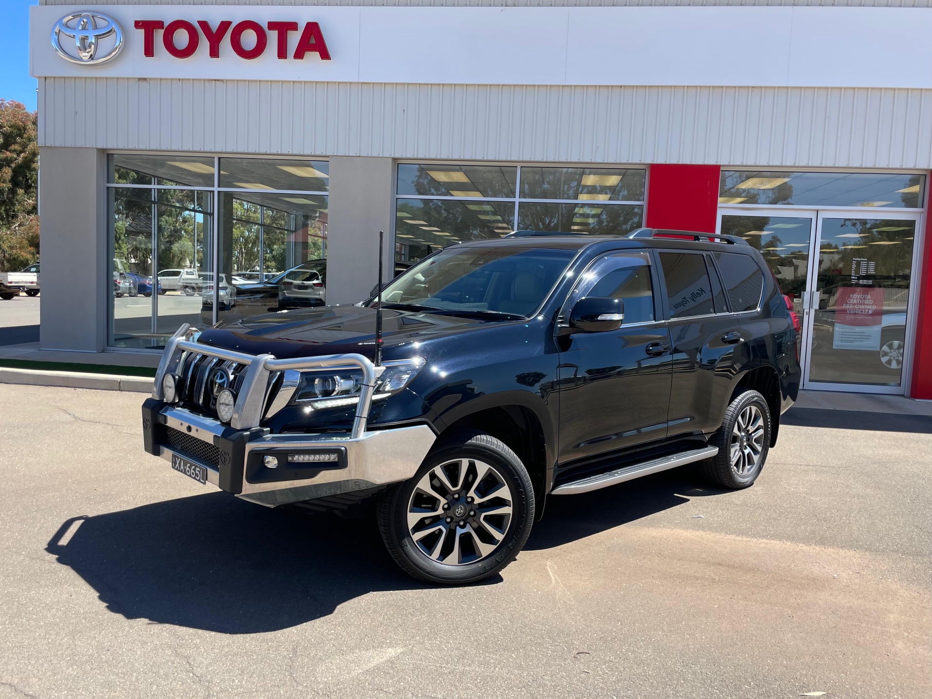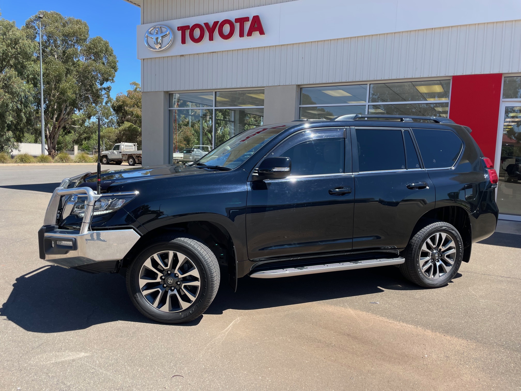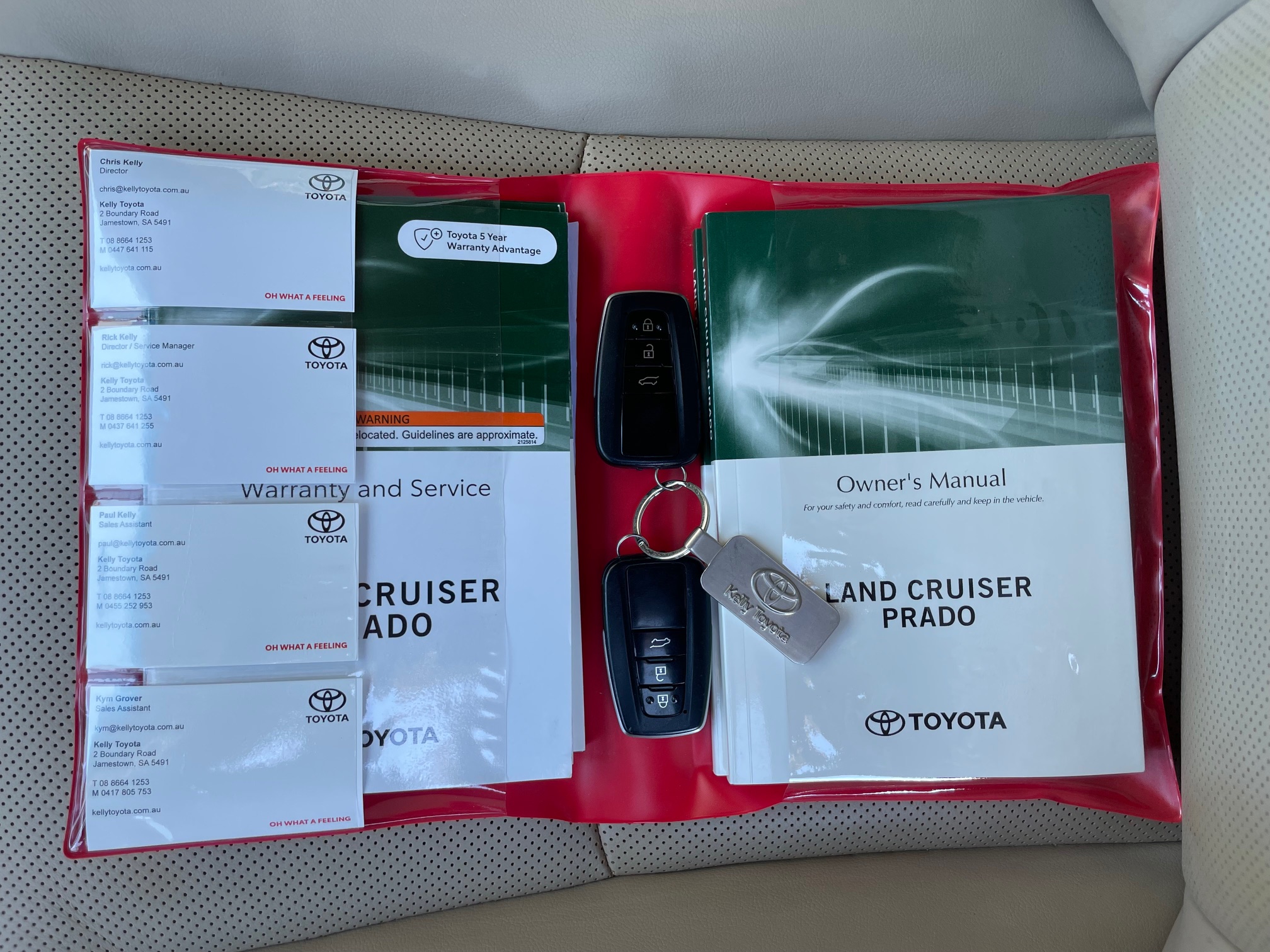 11.2021 Built Toyota Prado VX Turbo Diesel, first registered 1.2022. One local owner purchase from our dealership new. Vehicle comes complete with full up to date Toyota service history, owners manuals and 2 keys. This vehicle is in exception condition inside and out, fitted with Genuine Toyota Premium Alloy Bull Bar, Tow Bar, Lightforce Spot Lights, Floor Mats, Cargo Mat, Tow Bar, UHF Radio & Aerial, Anderson Plug, Rear Fridge Plug, Weather Shields, Bonnet Protector, and lots more features like, leather accented interior, heated and cooled electric adjustable front seats, heated middle seats, keyless entry, smart start, satellite navigation, 7 seater, long range fuel tank, dual air-conditioning, front and rear park sensors, centre console cool box, radar cruise control, pre-collision alert, reverse camera, panoramic view monitor, blind spot monitors, Apple Car Play plus lots more. Inspect today and get that Oh What A Feeling Toyota. New Vehicle Warranty until 1.2027, Engine and Drive-Train Warranty until 1.2029. Toyota Certified Used Vehicle comes with additional 1yr Factory Toyota Warranty. Vehicle is ready for immediate delivery.