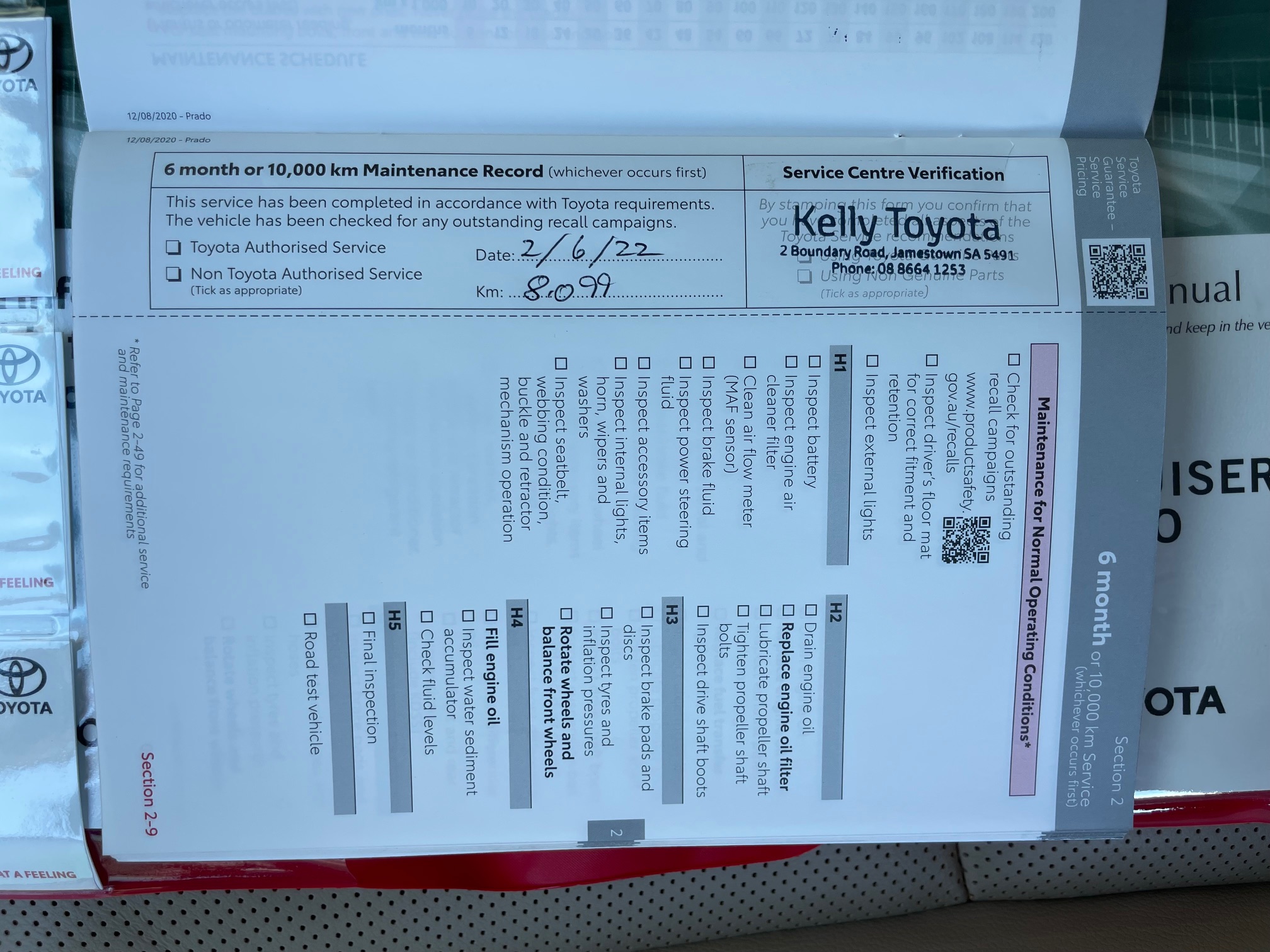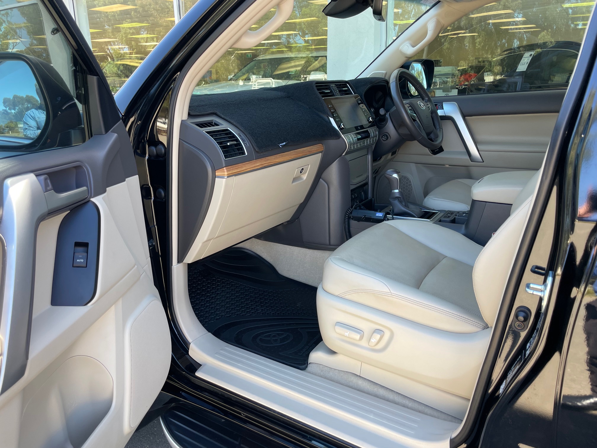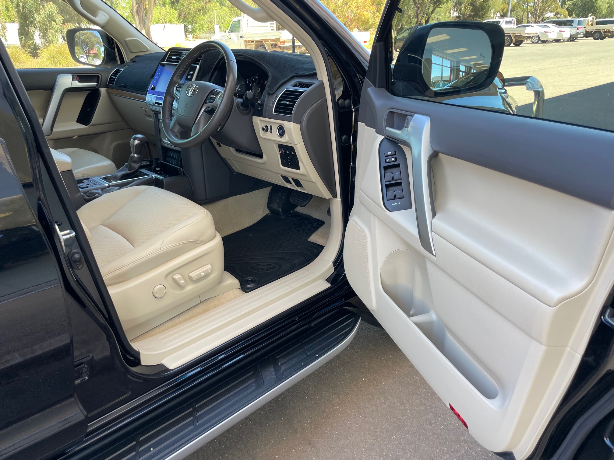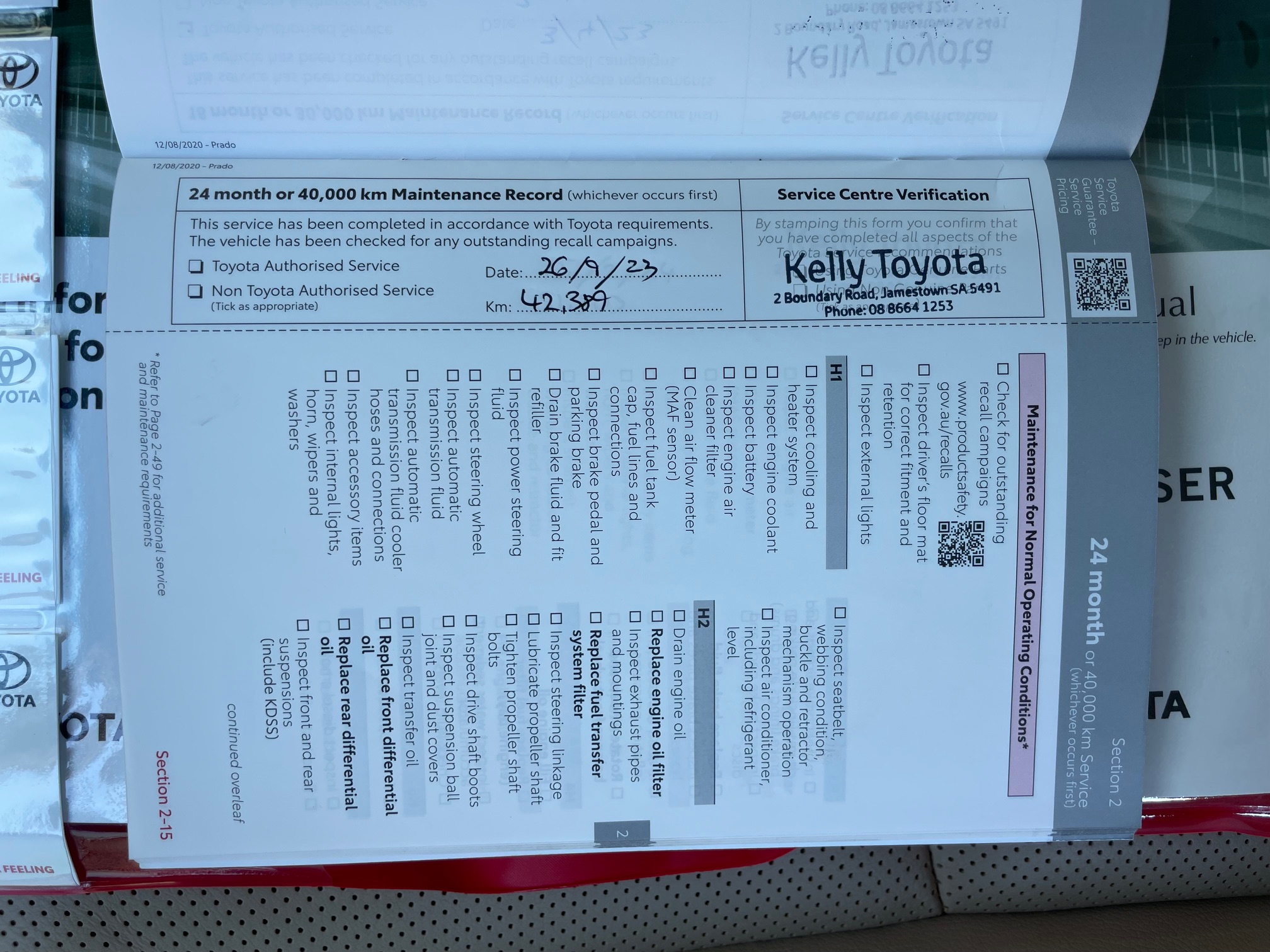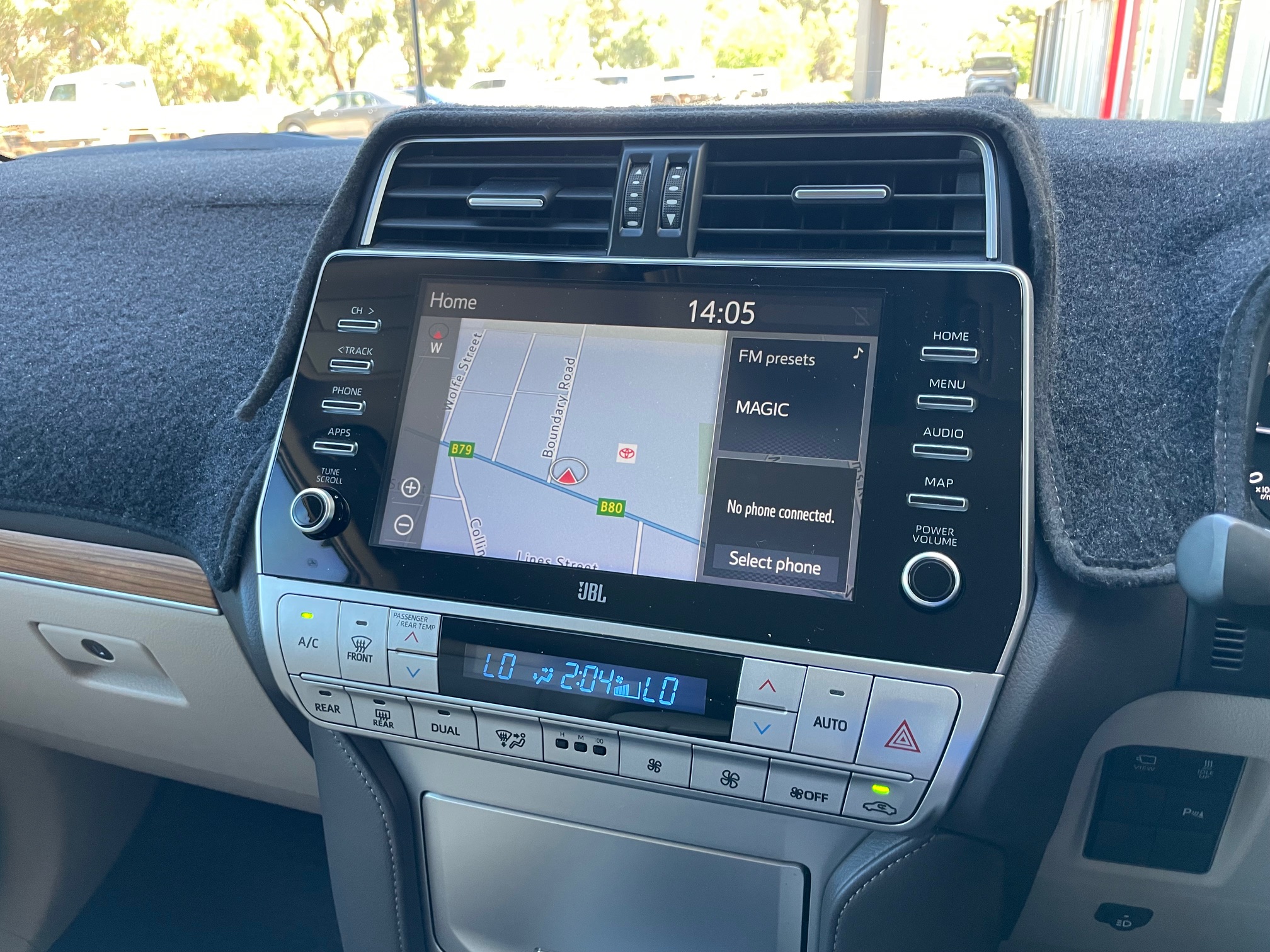 11.2021 Built Toyota Prado VX Turbo Diesel, first registered 1.2022. One local owner purchase from our dealership new. Vehicle comes complete with full up to date Toyota service history, owners manuals and 2 keys. This vehicle is in exception condition inside and out, fitted with Genuine Toyota Premium Alloy Bull Bar, Tow Bar, Lightforce Spot Lights, Floor Mats, Cargo Mat, Tow Bar, UHF Radio & Aerial, Anderson Plug, Rear Fridge Plug, Weather Shields, Bonnet Protector, and lots more features like, leather accented interior, heated and cooled electric adjustable front seats, heated middle seats, keyless entry, smart start, satellite navigation, 7 seater, long range fuel tank, dual air-conditioning, front and rear park sensors, centre console cool box, radar cruise control, pre-collision alert, reverse camera, panoramic view monitor, blind spot monitors, Apple Car Play plus lots more. Inspect today and get that Oh What A Feeling Toyota. New Vehicle Warranty until 1.2027, Engine and Drive-Train Warranty until 1.2029. Toyota Certified Used Vehicle comes with additional 1yr Factory Toyota Warranty. Vehicle is ready for immediate delivery.
