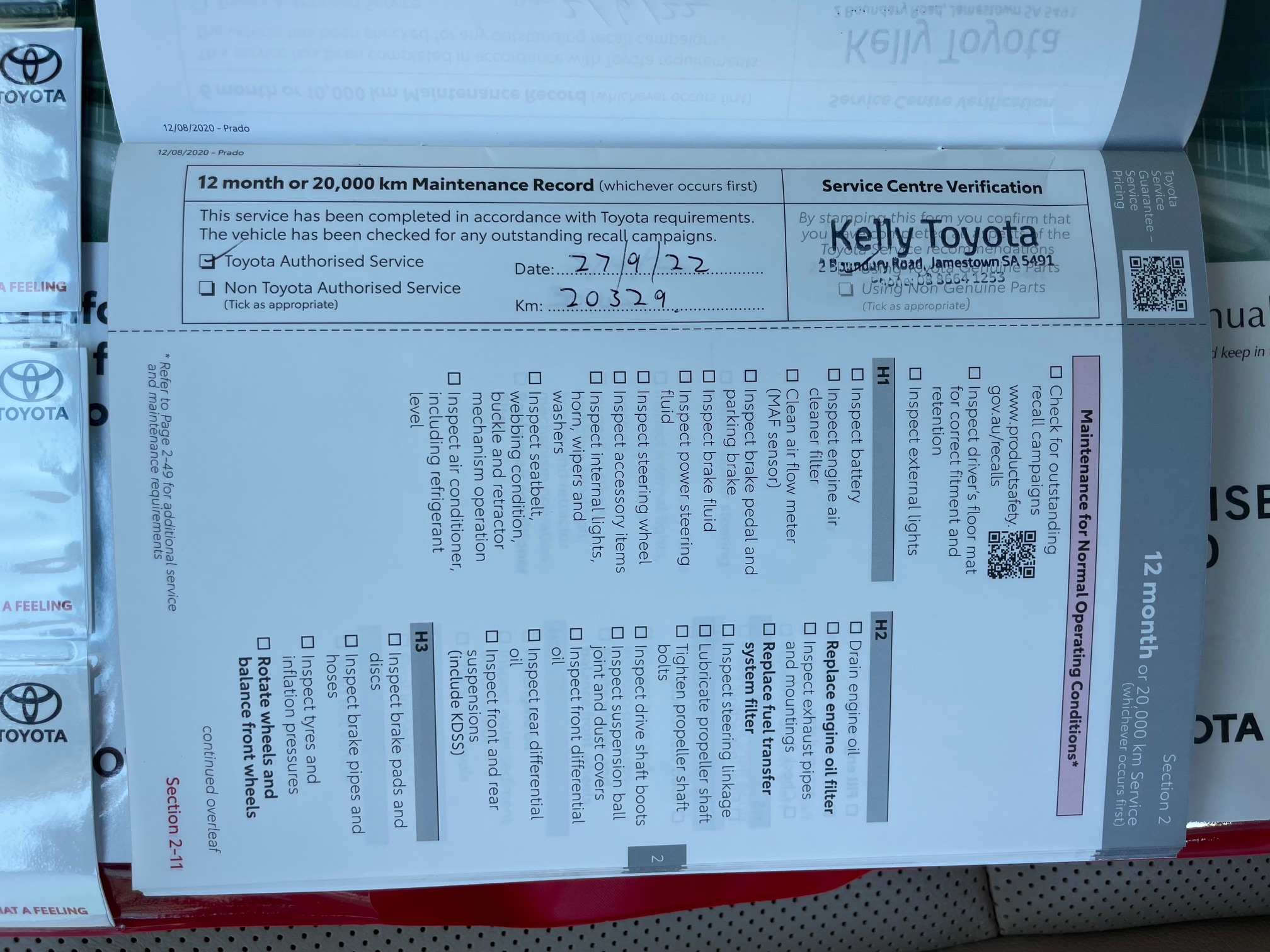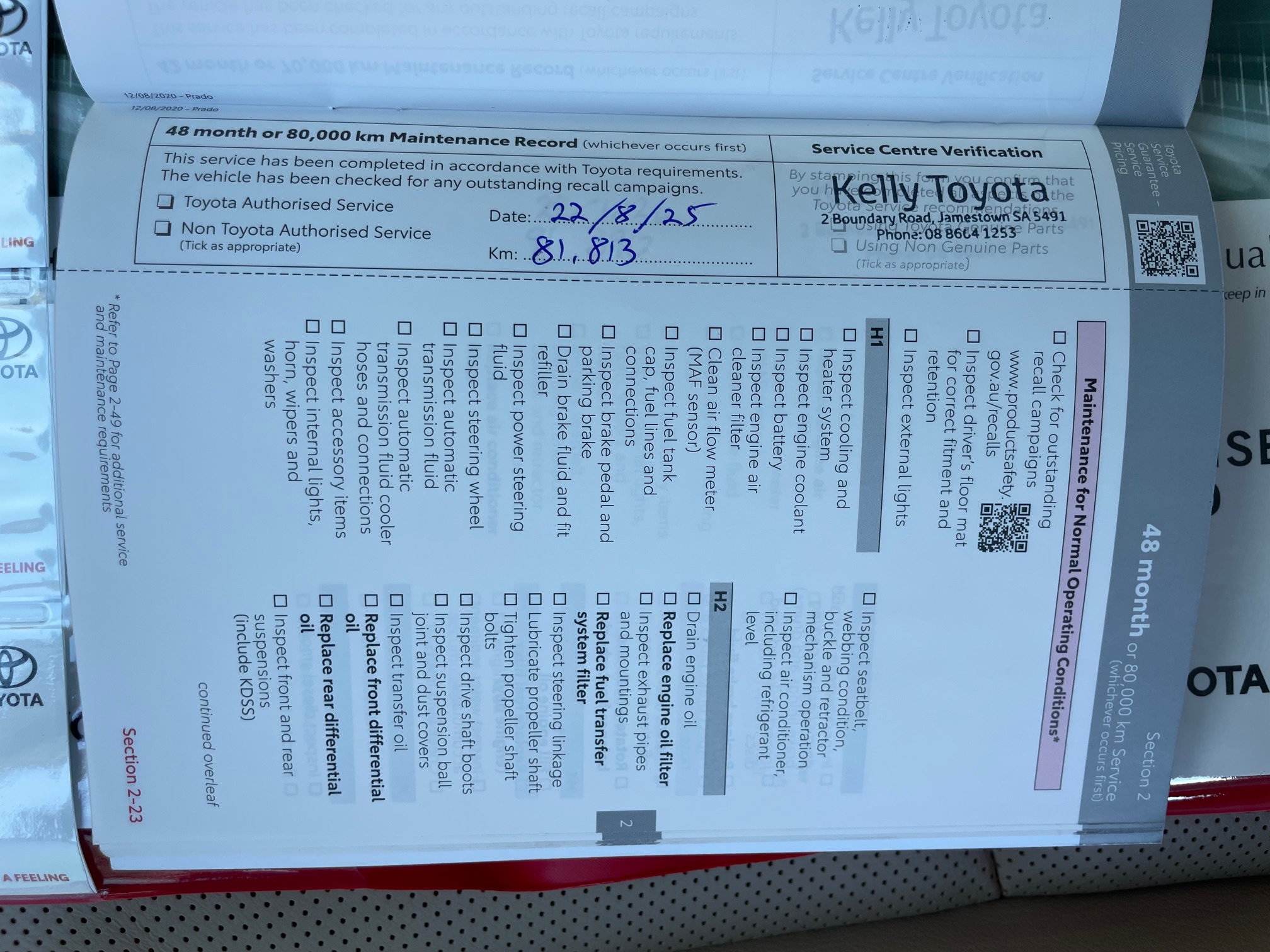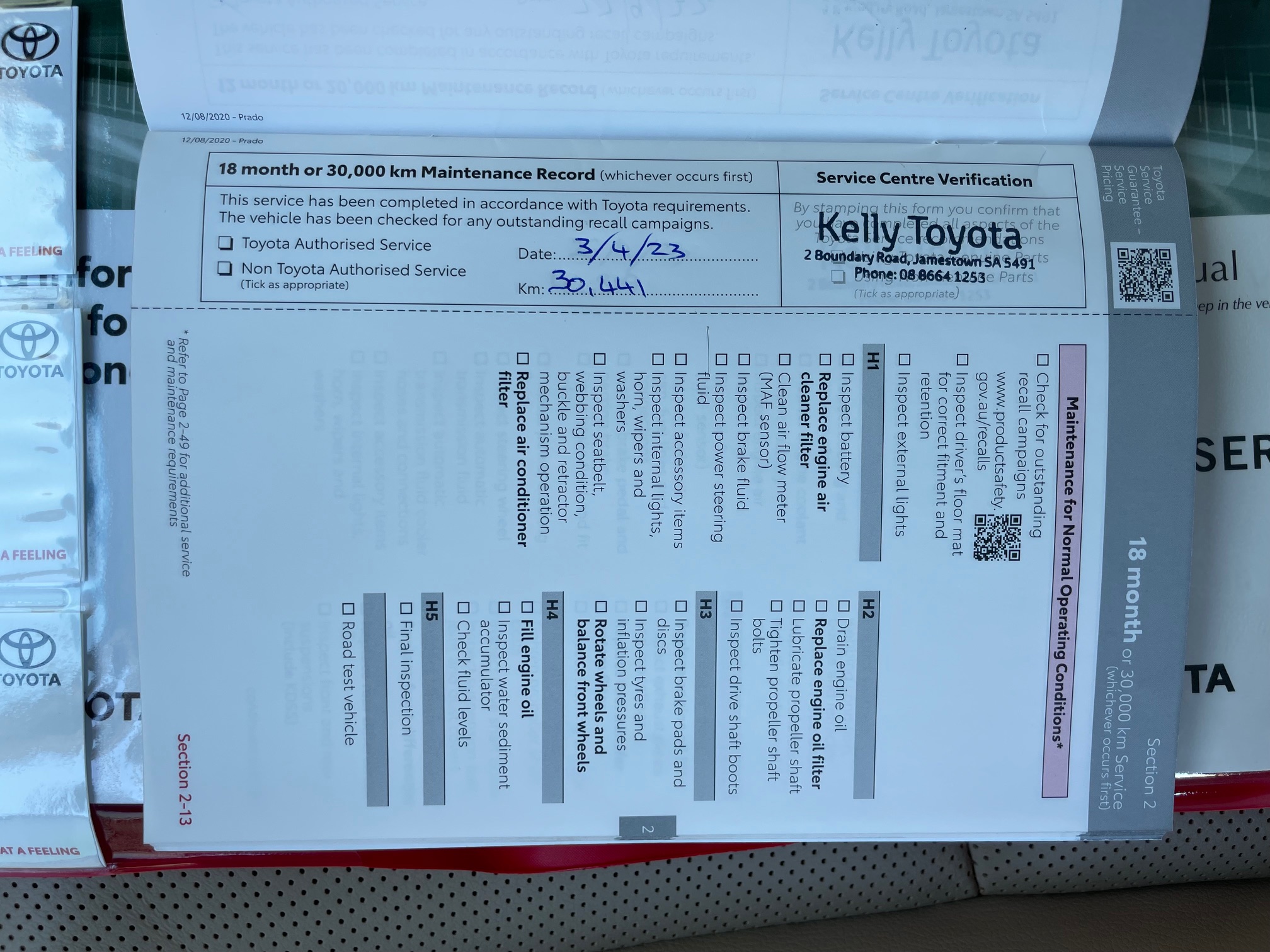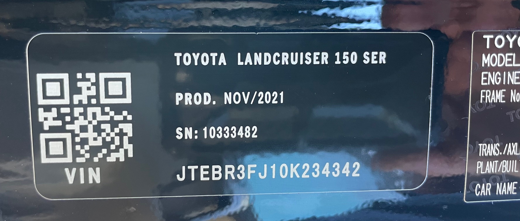 11.2021 Built Toyota Prado VX Turbo Diesel, first registered 1.2022. One local owner purchase from our dealership new. Vehicle comes complete with full up to date Toyota service history, owners manuals and 2 keys. This vehicle is in exception condition inside and out, fitted with Genuine Toyota Premium Alloy Bull Bar, Tow Bar, Lightforce Spot Lights, Floor Mats, Cargo Mat, Tow Bar, UHF Radio & Aerial, Anderson Plug, Rear Fridge Plug, Weather Shields, Bonnet Protector, and lots more features like, leather accented interior, heated and cooled electric adjustable front seats, heated middle seats, keyless entry, smart start, satellite navigation, 7 seater, long range fuel tank, dual air-conditioning, front and rear park sensors, centre console cool box, radar cruise control, pre-collision alert, reverse camera, panoramic view monitor, blind spot monitors, Apple Car Play plus lots more. Inspect today and get that Oh What A Feeling Toyota. New Vehicle Warranty until 1.2027, Engine and Drive-Train Warranty until 1.2029. Toyota Certified Used Vehicle comes with additional 1yr Factory Toyota Warranty. Vehicle is ready for immediate delivery.