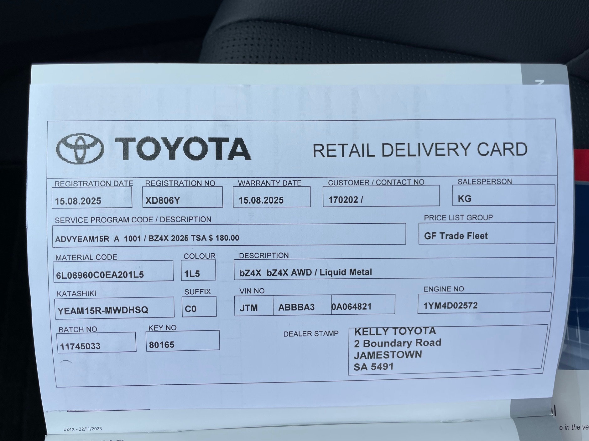 Inside, you\’ll find a thoughtfully designed cabin that prioritises both driver and passenger comfort, boasting modern features and advanced technology. The bZ4X also comes equipped with a suite of safety features, offering peace of mind for every journey. Whether you\’re navigating city streets or exploring the great outdoors, this SUV is built to handle it all with style and confidence. Don\’t miss the chance to experience the future of driving with this exceptional electric vehicle. New vehicle warranty until 8.2030, Hybrid drive line until 8.2032 and Hybrid battery until 8.2035 subject to Toyota\’s guidelines, maintenance and servicing. Capped price servicing at $180 per 15000kms or 12 months for up to 75000kms / 5 years. Vehicle is ready for immediate delivery.